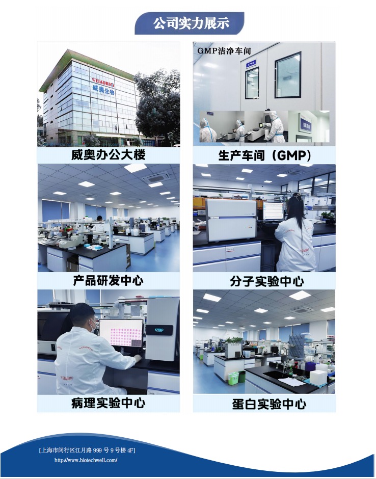 組織芯片、ELISA KIT、鏈霉親和素磁珠、蛋白純化試劑盒(磁珠法)、western整套產品(5種顏色的SDS-PAGE凝膠試劑盒、上層膠染料(遷移/不遷移)、快速轉膜液、快速封閉液、通用抗體稀釋液、免脫色考馬斯亮藍染色液等)、免疫組化整套試劑(TSA試劑盒、IHC試劑盒、SABC試劑盒、HRP多聚體二抗等)以及常用緩沖液。